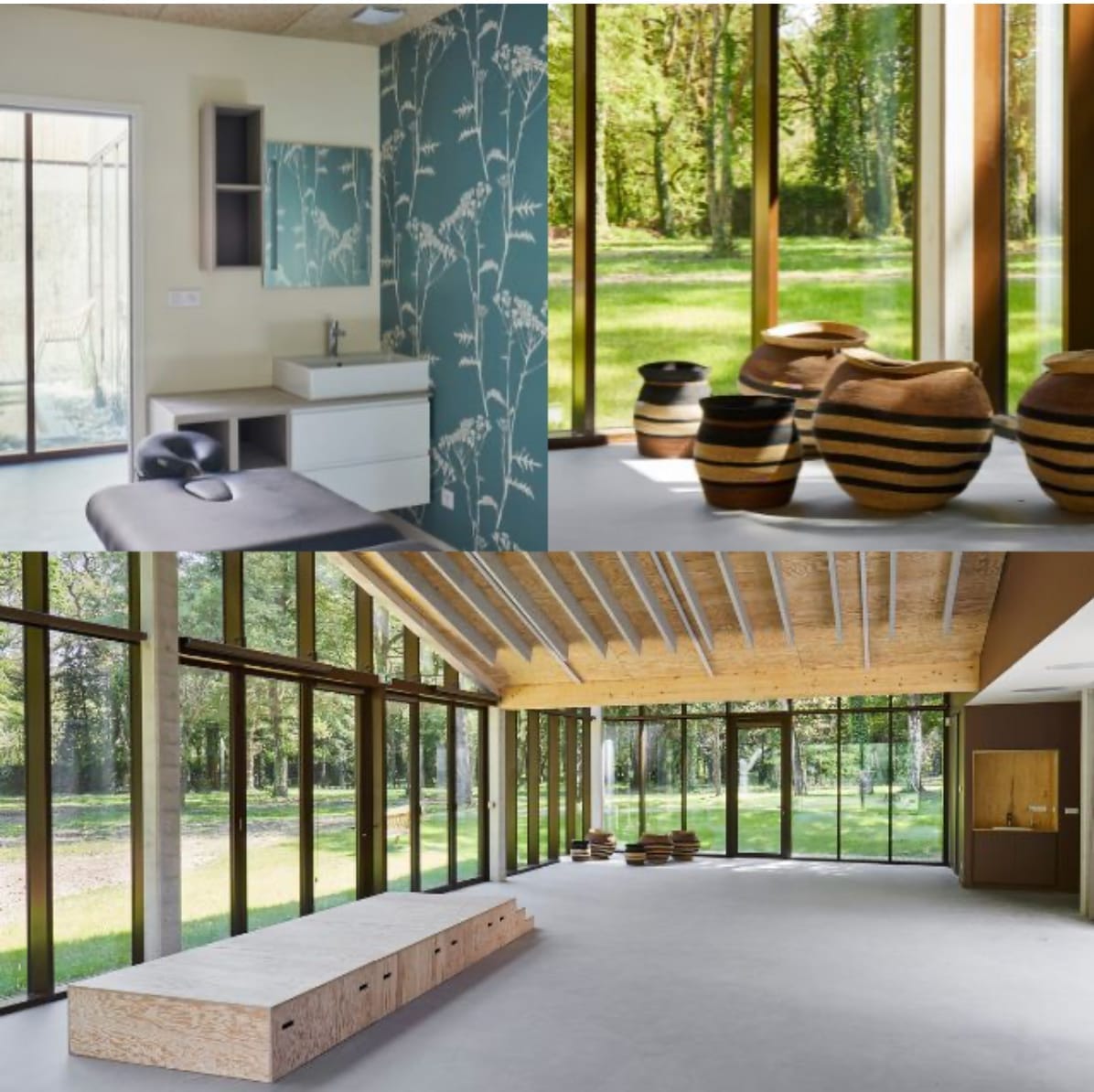 Le lieu dispose d’un spa, piscine, sauna et hammam, ainsi que d’espaces ouverts sur la nature,